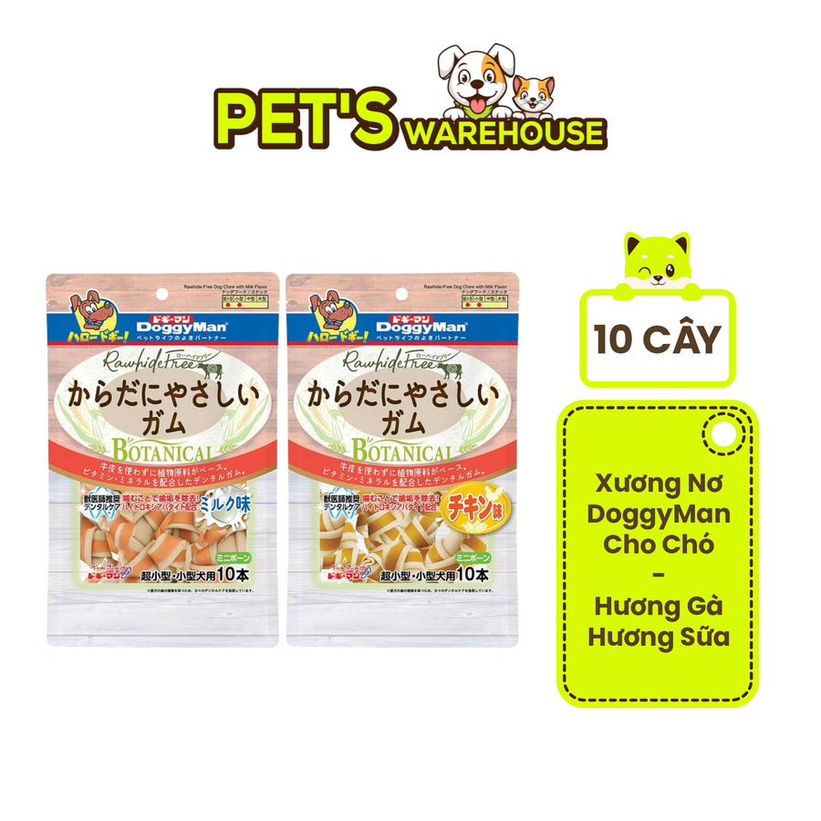 Xương Nơ DoggyMan Hương Gà, Hương Sữa Cho Chó, Gói 10 Cây