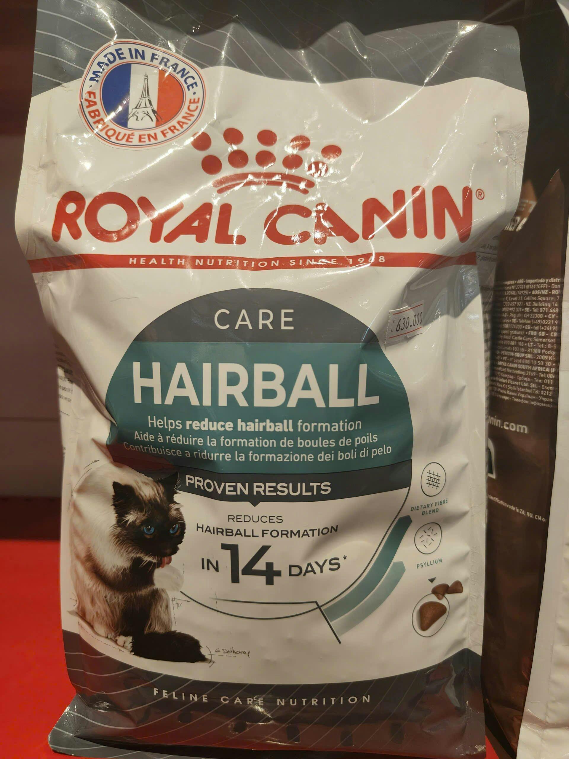 Mèo nôn ói do búi lông? Tiêu hóa kém? Đừng lo! Royal Canin Hairball Care với công thức chuyên biệt giúp mèo tống khứ búi lông chỉ sau 14 ngày. Đồng thời hỗ trợ tiêu hóa, làm sạch răng và cung cấp đầy đủ dinh dưỡng cho mèo cưng.