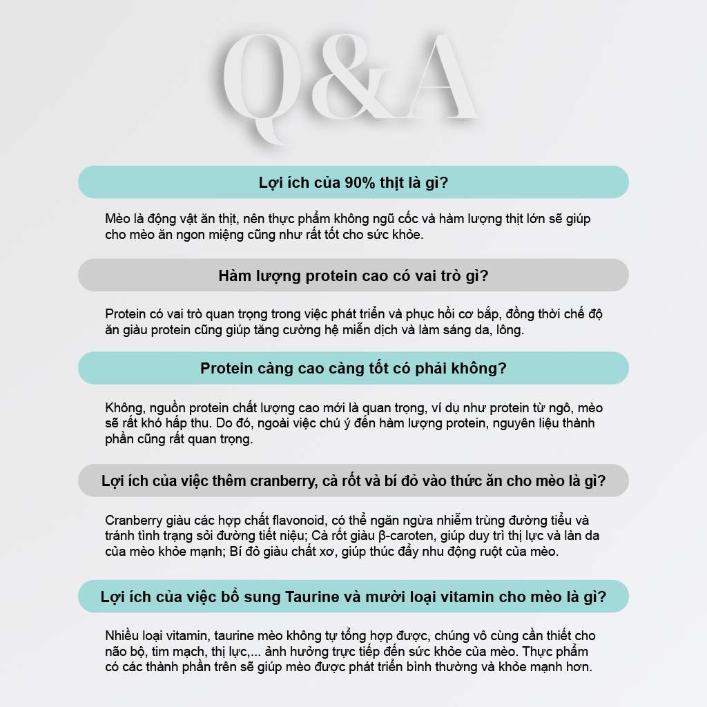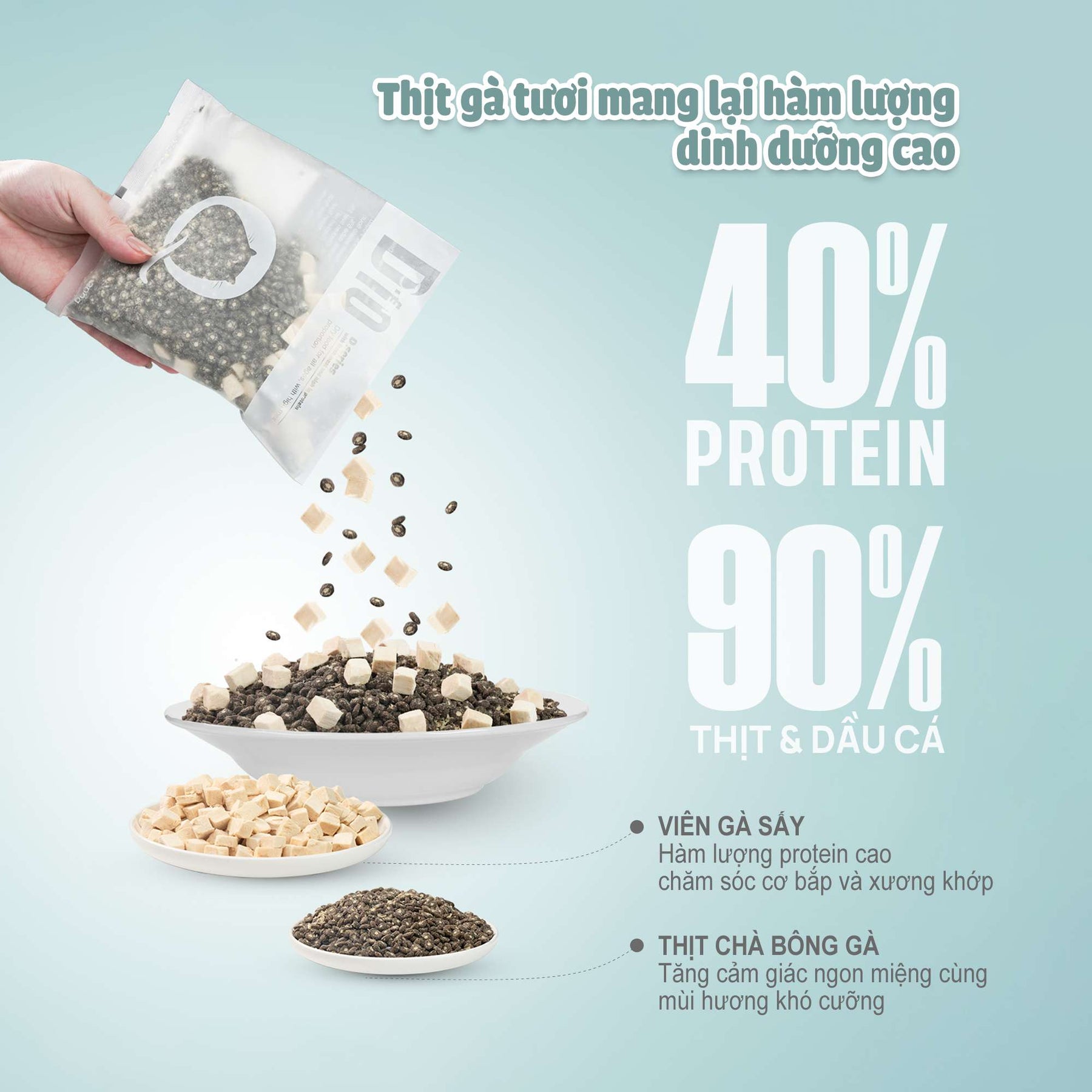 - Hàm lượng thịt lên đến 90%, không thêm muối và ngũ cốc.
