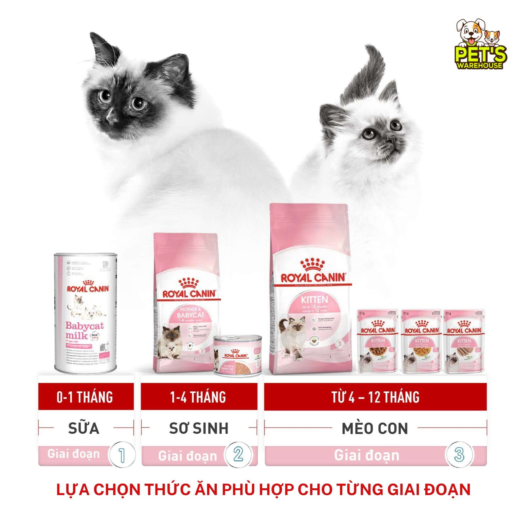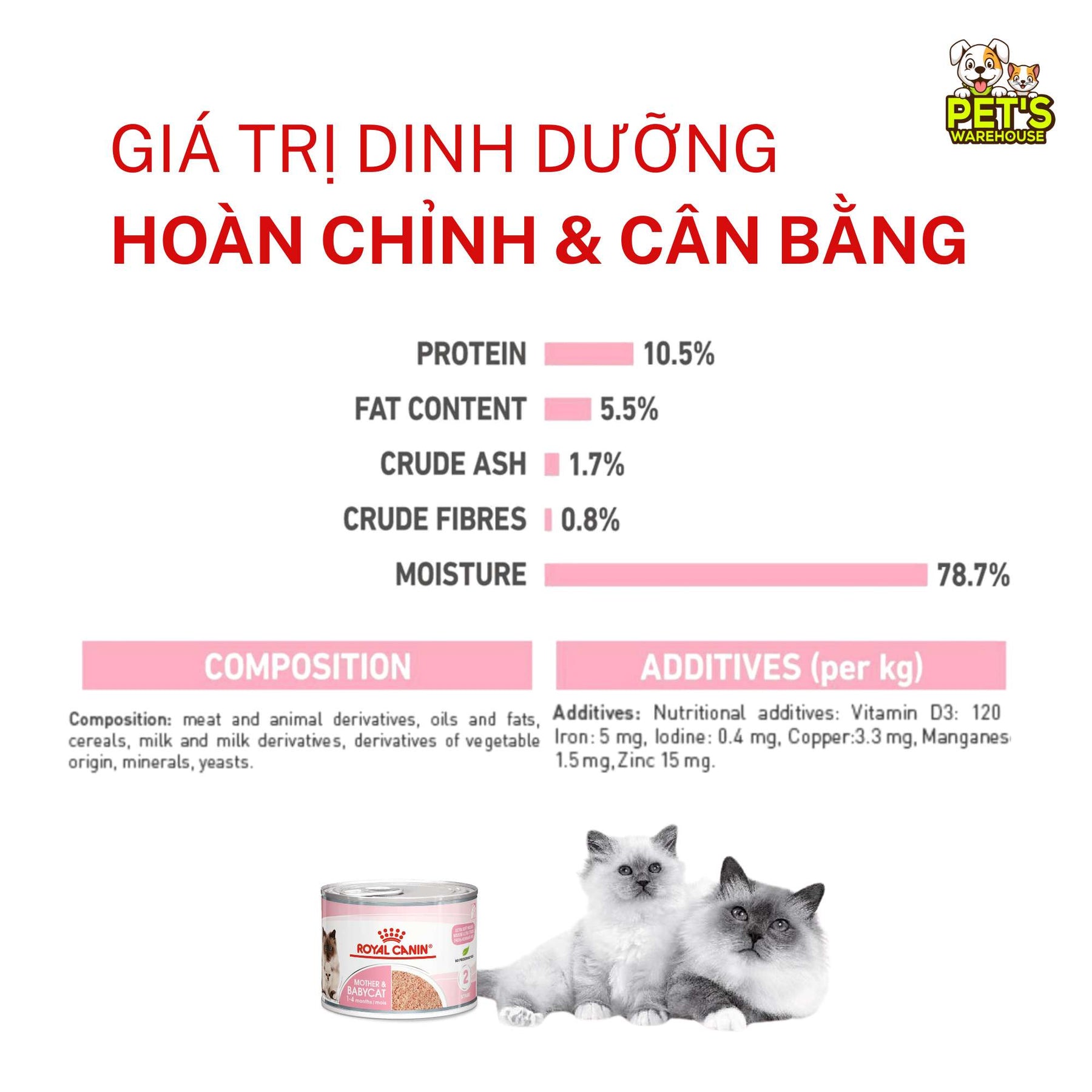 - Có thể ăn riêng hoặc trộn cùng hạt khô Royal Canin Mother & Babycat.