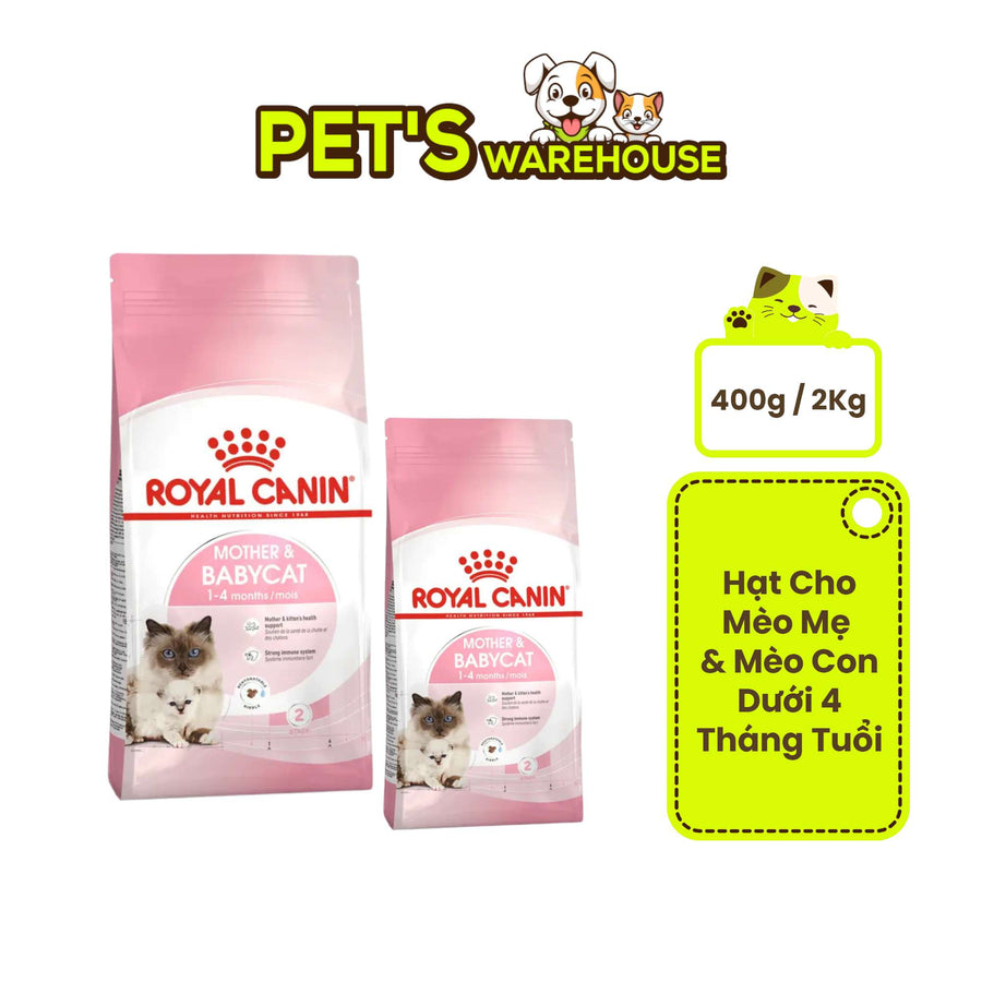 Hạt cho Mèo Mẹ & Mèo Con dưới 4 tháng tuổi, Royal Canin Mother & Babycat. Dinh dưỡng chuyên biệt giúp Mèo con lớn khỏe, Mèo mẹ phục hồi nhanh!