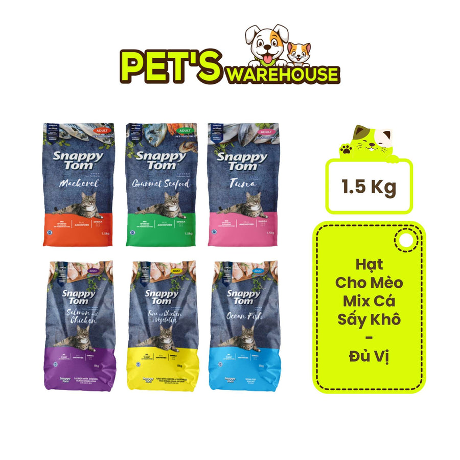 Hạt Cho Mèo Mix Cá Sấy Khô Snappy Tom - Túi 1.5Kg, Bí quyết dinh dưỡng cao cấp cho Boss đến từ Úc!