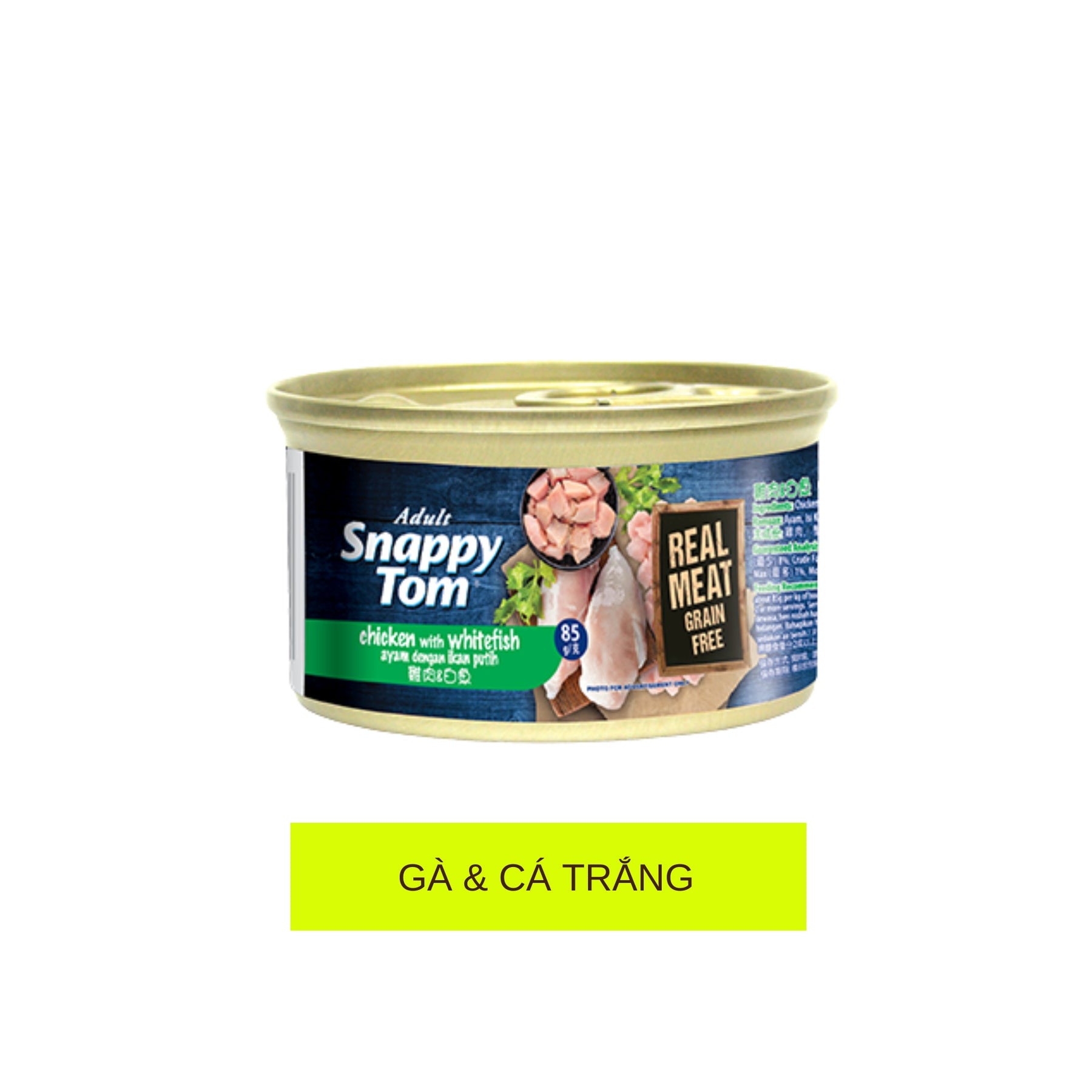 Pate Cho Mèo Snappy Tom Premium, Lon 85g: Thức ăn ướt hảo hạng từ THỊT & CÁ THẬT, quyện cùng nước sốt thơm ngon trứ danh 😻