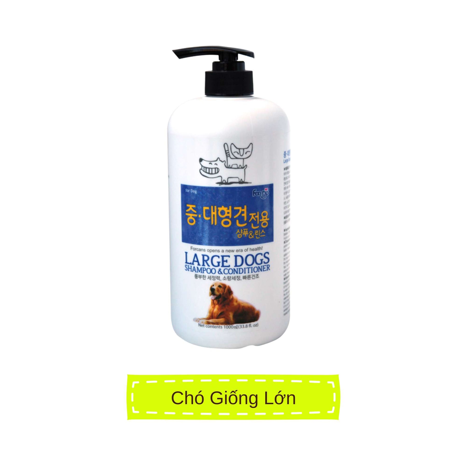 - Forcans Large Dogs: Dành cho chó cỡ vừa và lớn. Tăng cường khả năng làm sạch lông dày và khử mùi cơ thể mạnh hơn các dòng thông thường. Công thức ít bọt giúp xả nhanh, tiết kiệm thời gian tắm.