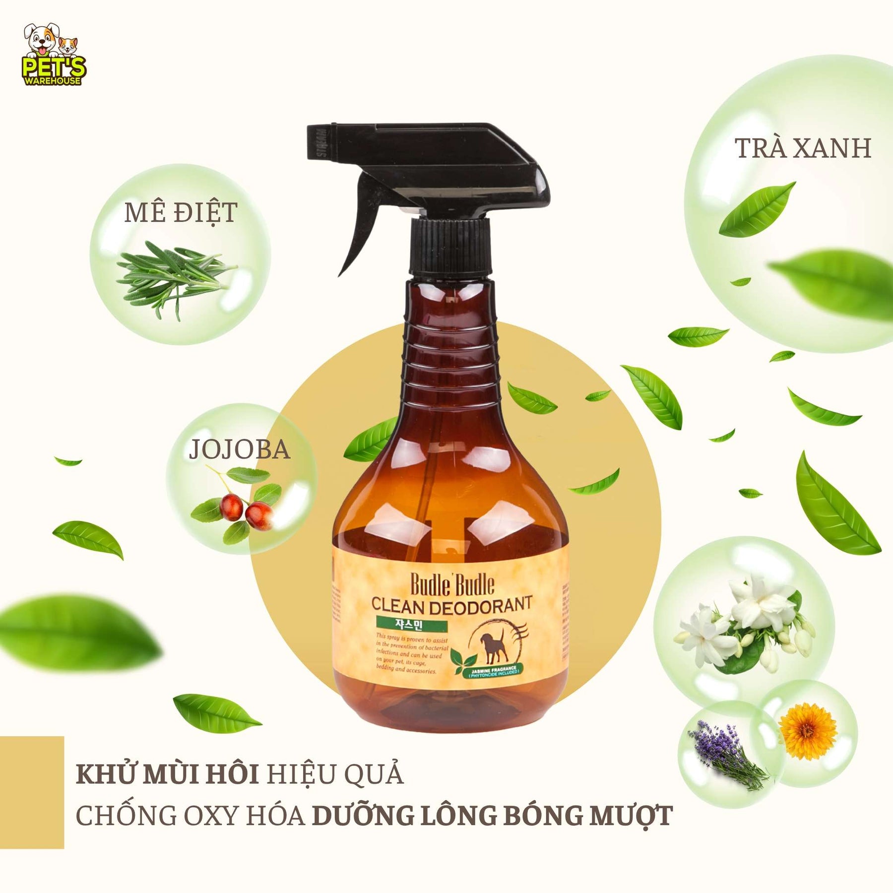 Xịt khử mùi dưỡng lông chó Budle’Budle 530ml: Boss thơm tho sạch sẽ mỗi ngày, an toàn cho cả những Boss có da nhạy cảm.