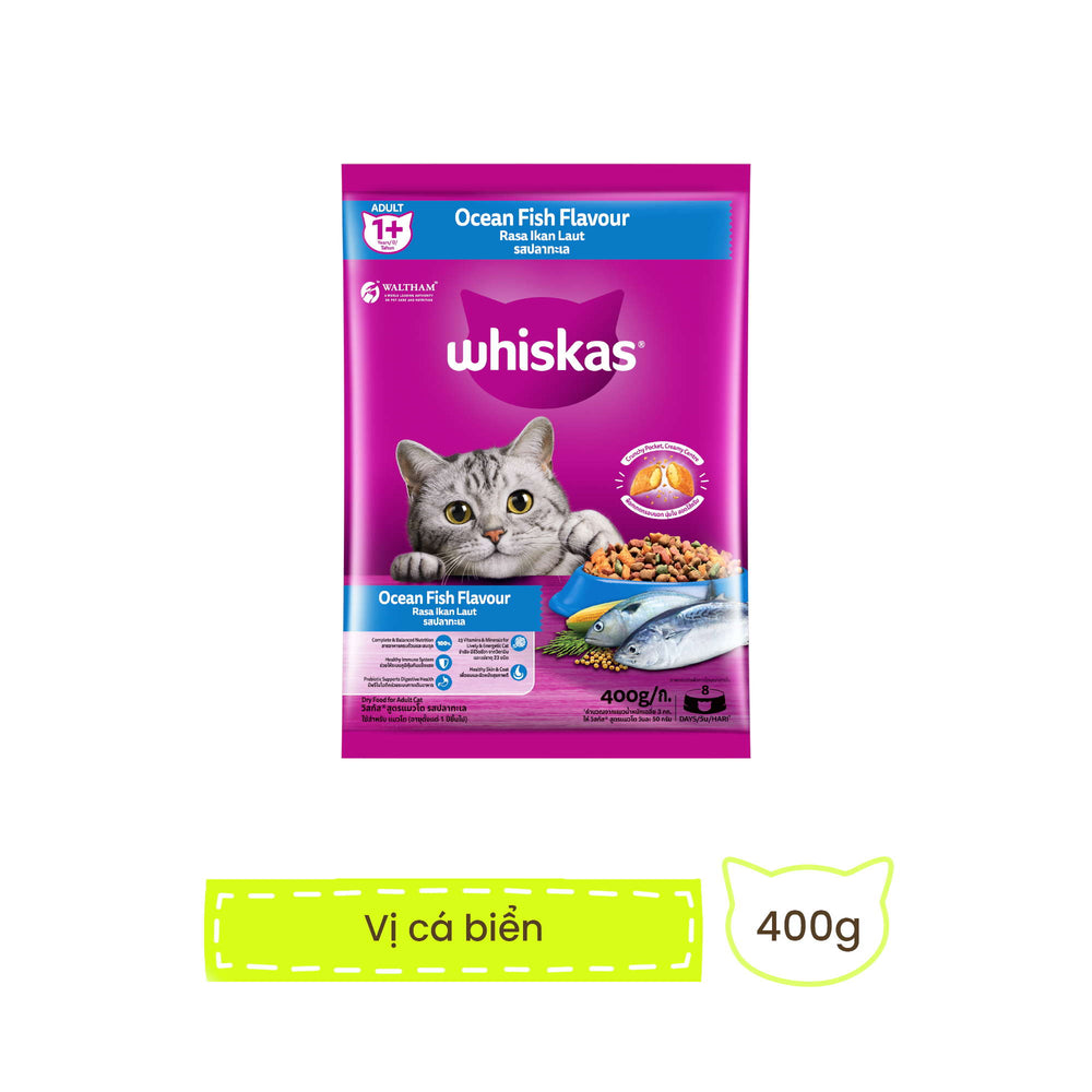 Hạt Khô Cho Mèo Lớn Whiskas Adult, Túi 400g: Thích hợp mua dùng thử, dinh dưỡng toàn diện & cân bằng, đạt tiêu chuẩn toàn cầu!
