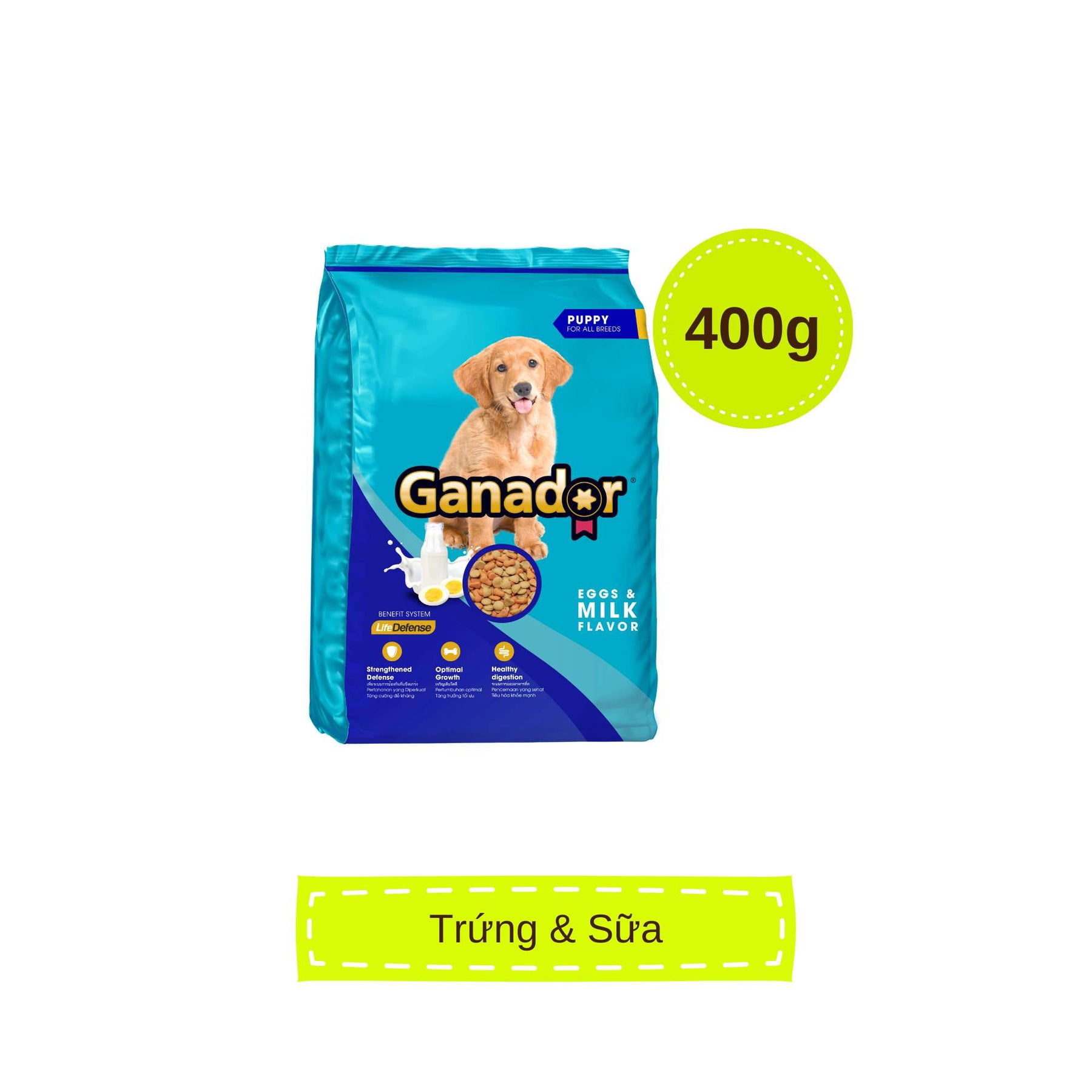 - Hạt Ganador Puppy với hàm lượng tăng cường DHA và Sữa, giúp cún phát triển não bộ và xương. Hàm lượng sữa trong thức ăn có công thức tương đương sữa mẹ giúp tăng cường hệ miễn dịch.