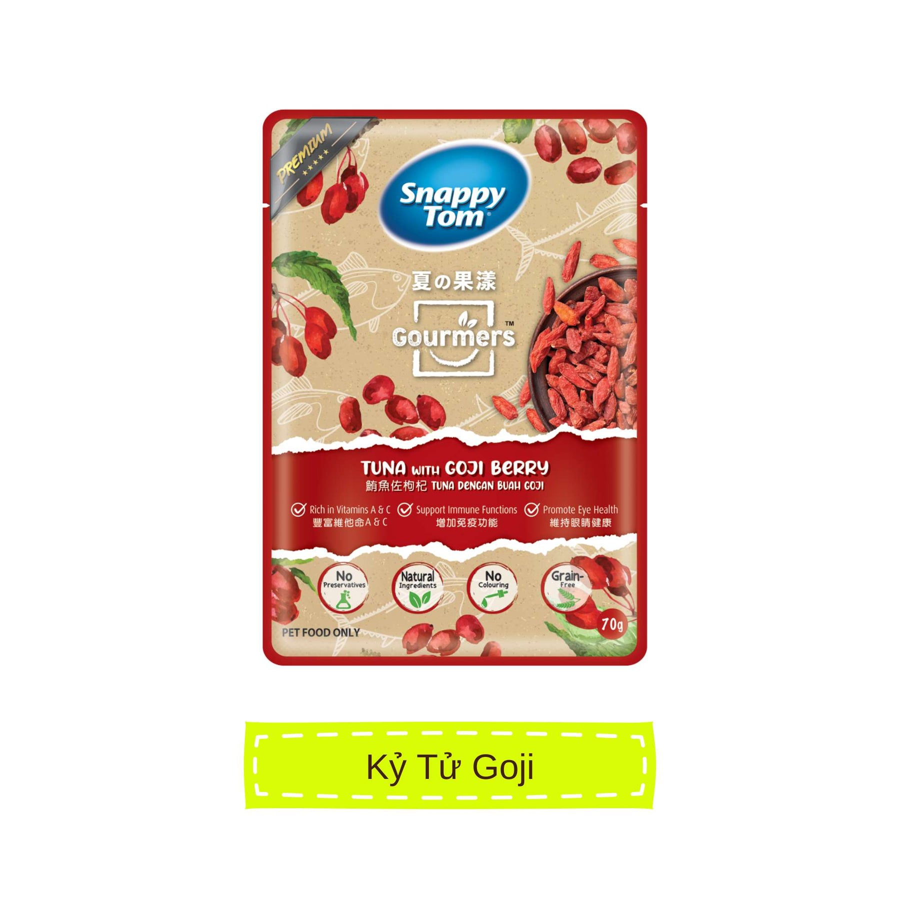Pate cho mèo Snappy Tom Cá Ngừ mix Trái Cây là sản phẩm được làm từ Cá Ngừ tươi ngon kết hợp với các loại trái cây như táo, xoài, kiwi, dứa,... cung cấp đầy đủ dinh dưỡng cho mèo cưng từ 2 tháng tuổi.