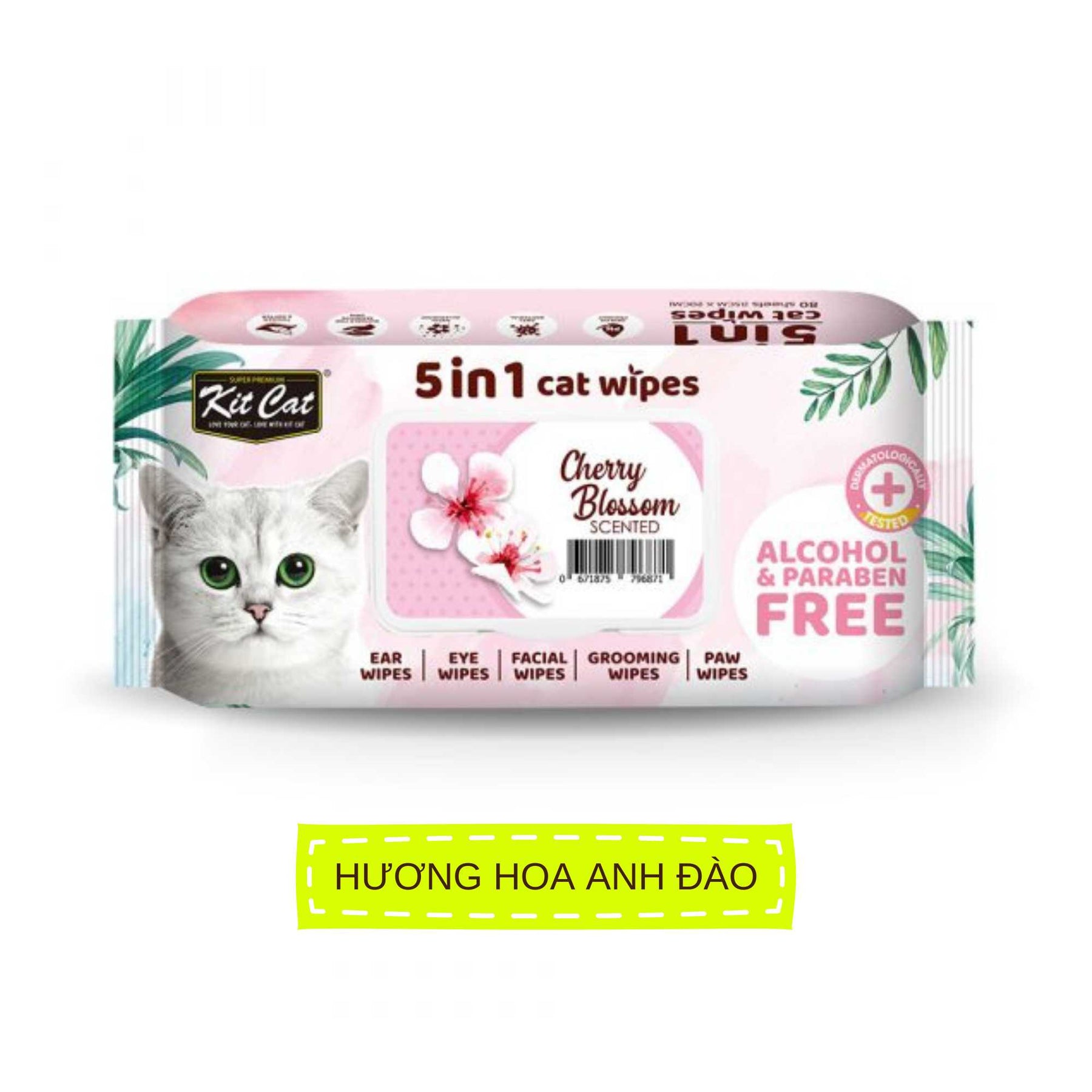 Khăn Ướt Kit Cat Cho Mèo, Gói 80 Tờ: Kháng khuẩn, dịu nhẹ an toàn, hương dịu nhẹ 🐱